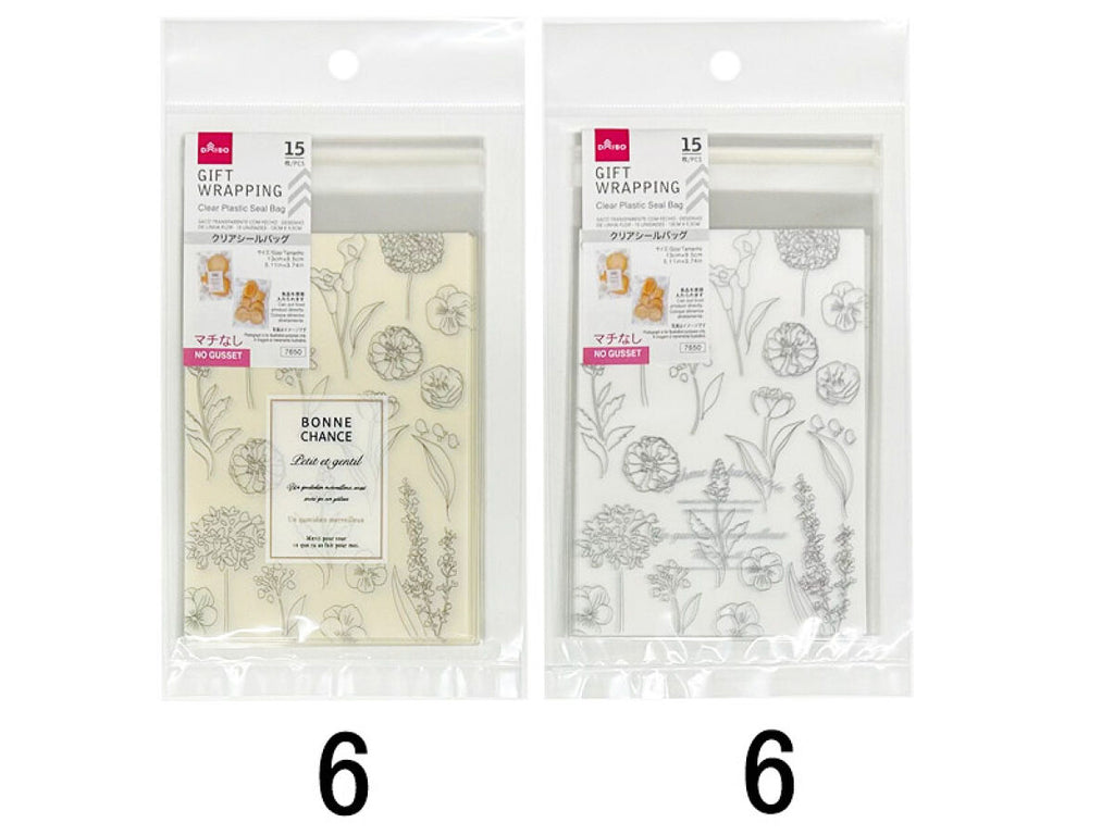 クリアシールバッグ(線画フラワー、15枚、13cm×9.5cm)