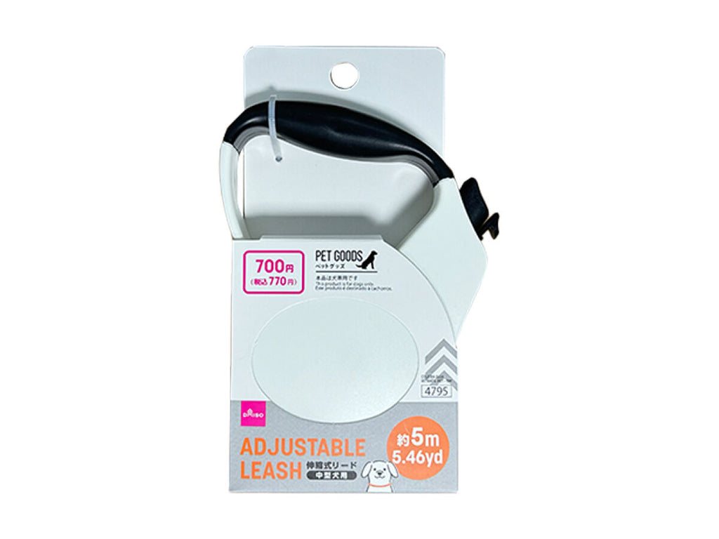 - 商品説明:20kgまでの中型犬用 伸縮距離約5m ①リードの長さを固定するには、ボタンを押してロックをかけてください。 ロックする際は、ボタンをしっかりと押してください。 ブレーキがスベッた状態(カラカラと異音がする状態)で使用すると、破損の原因となります。 ②軽くロックを下にスライドして、固定を解除してください。 リードの伸縮の際は、ねじれに注意してください。 リードがもつれた時は、全て出しきってから巻取ってください。●お子様の手の届かない場所に保管してください。●本品は犬用です。犬以外に使用しないでください。●事故防止のため、適応サイズ、適応体重以外の犬に使用しないでください。●本品は散歩用です。係留用に使用しないでください。●噛み癖のある犬には使用しないでください。●嫌がったり、興奮したりしている場合は使用しないでください。●やけどの原因になりますので、リードを巻き取ったり伸ばしたりする場合は絶対にリードを手で持たないでください。●分解・修理・改造等しないでください。けがや事故の原因になります。●お子様が使用する際は、保護者と一緒に使用してください。●本品は消耗品ですので、使用前には必ず点検し傷