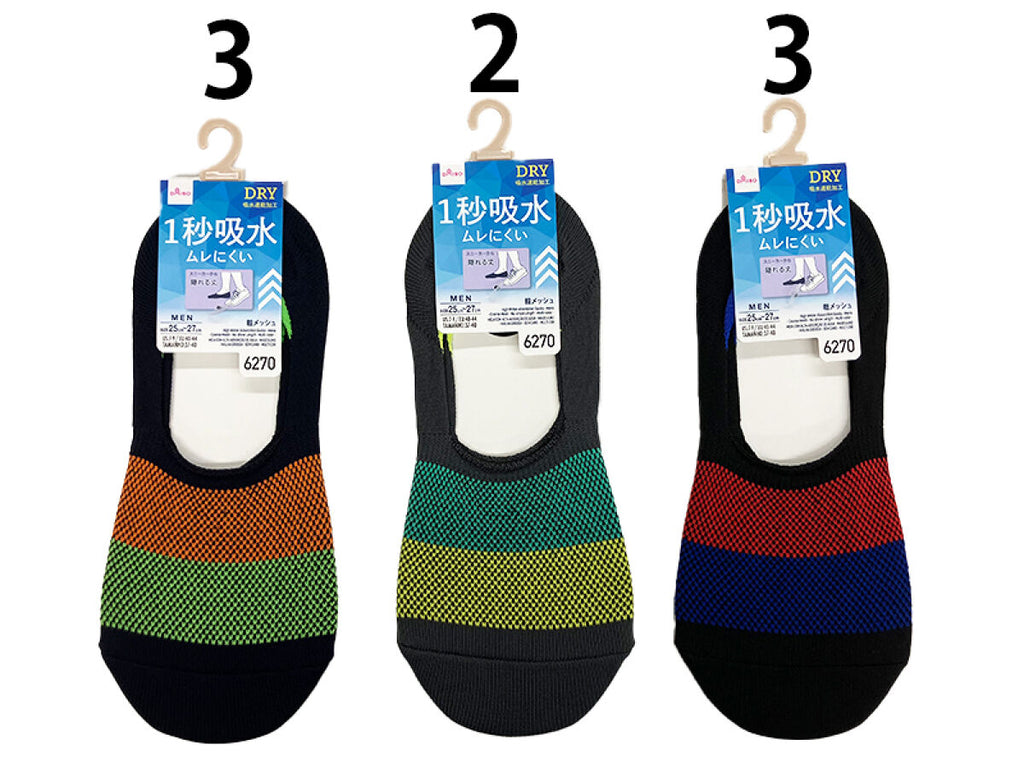 1秒吸水ソックス(メンズ、粗メッシュ、カバー、色切替)