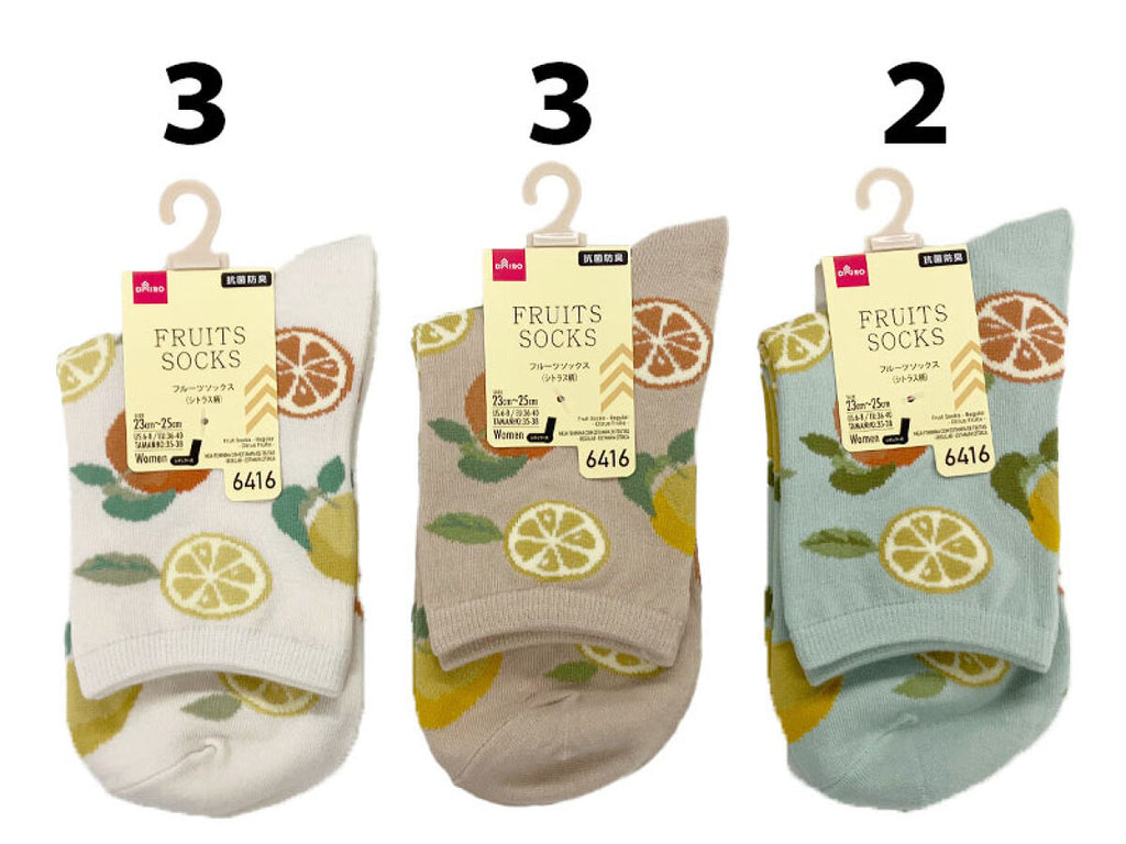 フルーツソックス(レギュラー丈、抗菌防臭、シトラス柄)