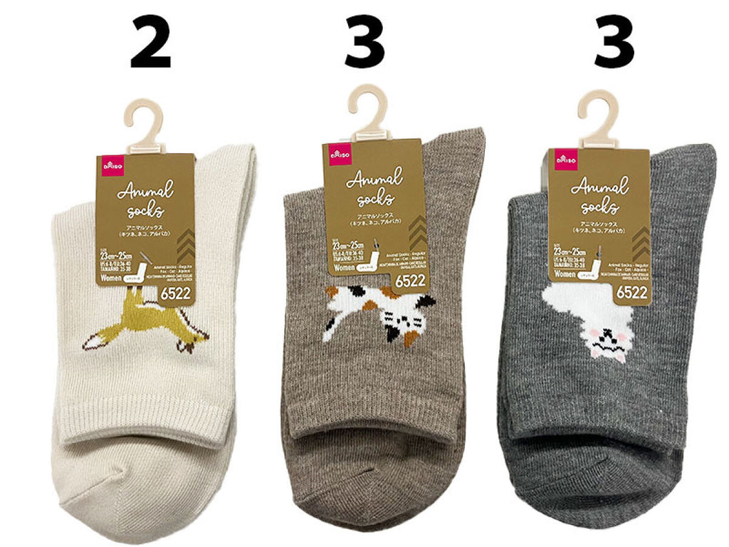 アニマルソックス(レギュラー丈、キツネ、ネコ、アルパカ)