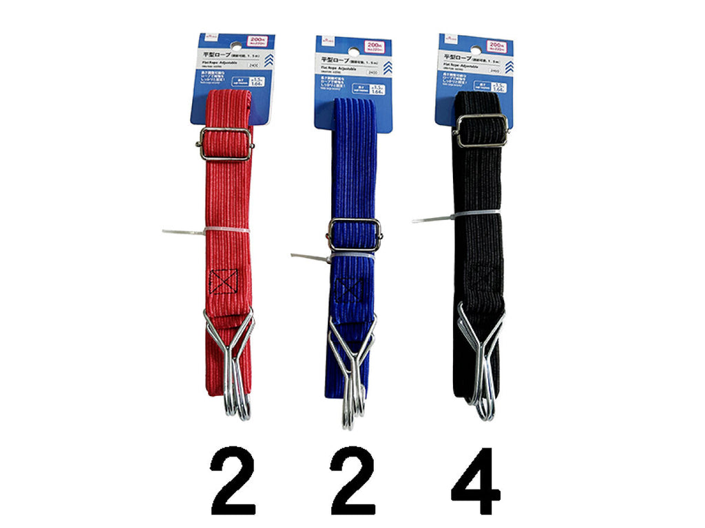 - 商品説明:荷物のホルードが抜群の高伸縮性!最長1.5mまで引く!荷物しっかり固定!