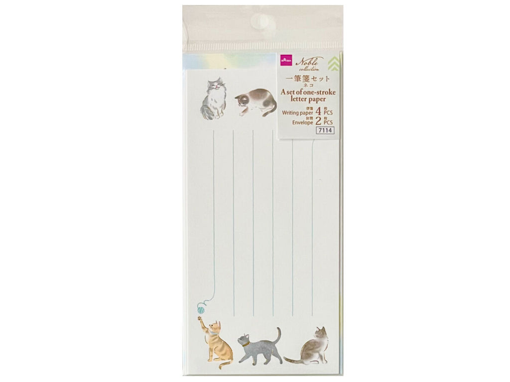 一筆箋セット(ノーブルコレクション、ネコ、便箋4枚、封筒2枚)