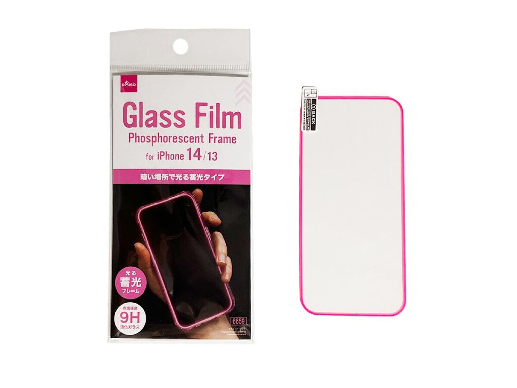 ガラスフィルム蓄光フレーム(14&13、ピンク)