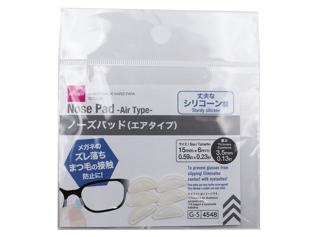 メガネのノーズパッドの汚れをきれいにふき取ってください。メガネのノーズパッドに貼り付けてください。