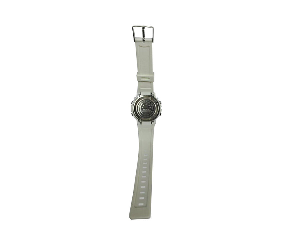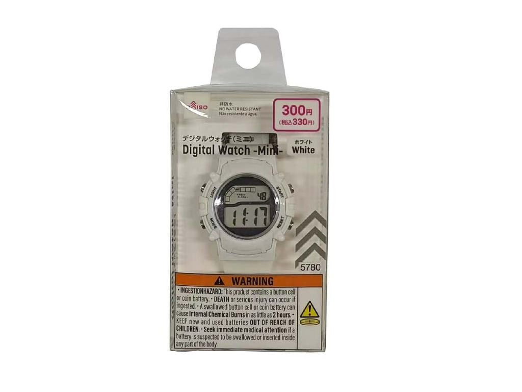 - 商品説明:デジタルウォッチ取扱説明書 非防水 ※この取扱説明書は大切に保管してください。 [現在時刻表示] 秒が進んでいる状態が現在時刻表示です。 A LⅠGHTボタンを押すと、LEDライトが点灯します。 B MODEボタンを押すと、1回:ストップウォッチ 2回:アラーム時刻設定 3回:現在時刻設定 4回:現在時刻表示に戻ります C STARTボタンを押すと、日付、曜日を表示します。 D RESETボタンを押すと、アラーム時刻を表示します。 平均月差:±60秒■現時刻の合わせ方 現在時刻を表示させます。 1 (B)ボタンを3回押します。【秒】が点滅します。 2 秒 【秒】が点滅している状態で(C)ボタンを押すと表示が00秒になります。 ※電話の時報などに合わせてください。 分 次にDボタンを押して【分】を点滅させ、Cボタンを押して【分】を合わせます。 (C)ボタンを長押しすると、数字が連続して変わります。この機能は【分】【時】【日】【月】【曜日】の設定およびアラーム時刻の設定等に利用すると便利です。 時 次にDボタンを押して【時】を点滅させ、Cボタンを押して【時】を合わせます。 ※
