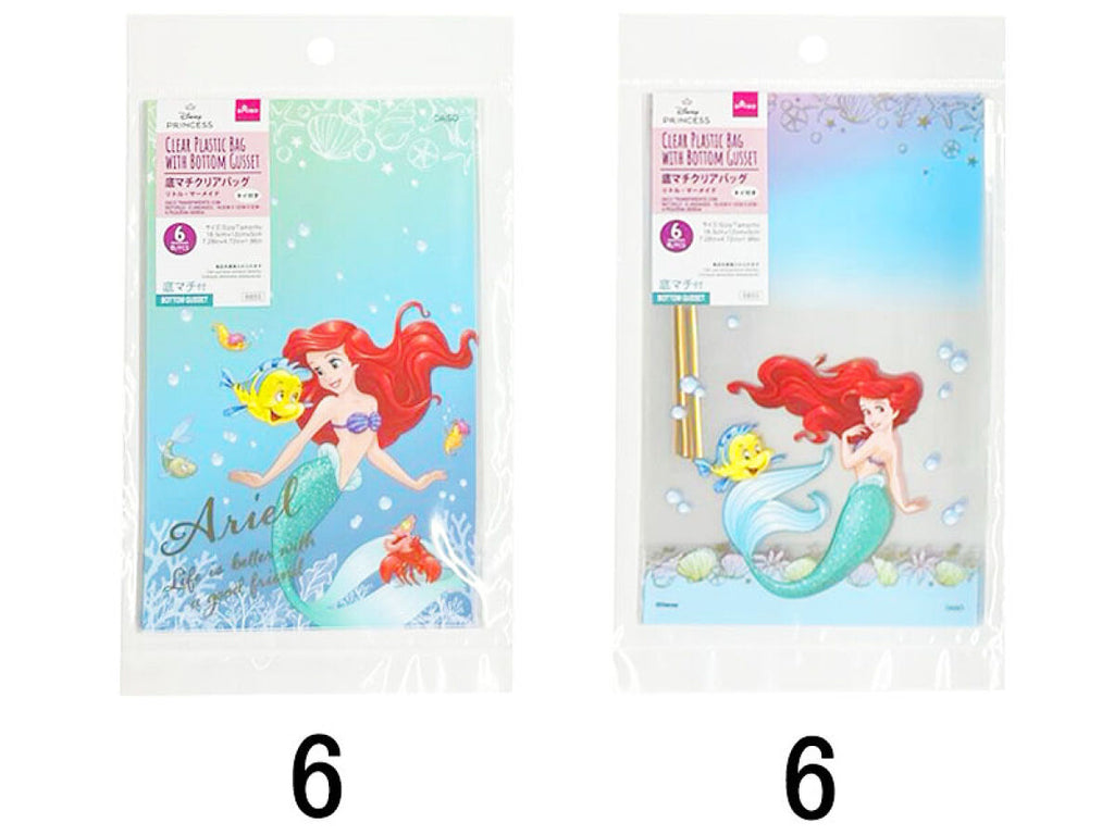 底マチクリアバッグ、6枚、18.5cm×12cm×5cm(リトル・マーメイド)
