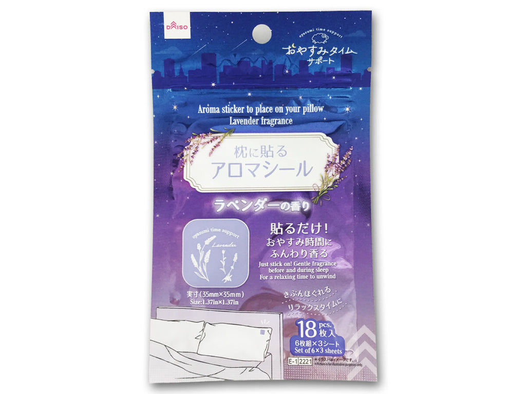 - 商品説明:おやすみサポート ラベンダーの香り 貼るだけ!おやすみ時間にふんわり香る 実寸 こころほぐれるリラックスタイムに 18枚入 6枚組×3シート●イラストはイメージです。枕に貼るだけ簡単アロマシールです。 就寝時に枕に貼ると、アロマの香りでリラックスできるシールです。 ラベンダーの柔らかく落ち着いた香り 絵柄は2種類シールをはがして枕やシーツなど、就寝時に香りを感じやすい所に貼り付けてください。 芳香持続時間の目安は約7時間です。(使用方法や使用環境により異なります)肌に直接貼らないでください。 妊産婦、乳幼児へのご使用はおすすめしておりません。 開封後はチャックをしっかりと閉じ、1か月を目安に使い切ってください。 未開封のまま長期間保管した場合、香りが劣化する場合があります。 肌に直接あたりそうな所には貼らないでください。 アレルギー症状やかぶれを起こしやすい体質の人は、注意して使用してください。 生地などの材質によっては、のり残りや生地を傷める場合があります。 長時間貼り付けたままにしないでください。 シールを貼ったまま洗濯しないでください。 貼り付ける場所に香りが移ります。あらかじめご了