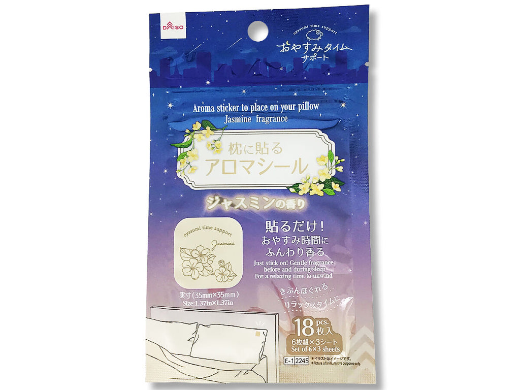 - 商品説明:おやすみサポート ジャスミンの香り 貼るだけ!おやすみ時間にふんわり香る 実寸 こころほぐれるリラックスタイムに 18枚入 6枚組×3シート●イラストはイメージです。枕に貼るだけ簡単アロマシールです。 就寝時に枕に貼るとアロマの香りでリラックスできるシールです。 ジャスミンの甘くエキゾチックな香り 絵柄は2種類シールをはがして枕やシーツなど、就寝時に香りを感じやすい所に貼り付けてください。 芳香持続時間の目安は約7時間です。(使用方法や使用環境により異なります)肌に直接貼らないでください。 妊産婦、乳幼児へのご使用はおすすめしておりません。 開封後はチャックをしっかりと閉じ、1か月を目安に使い切ってください。 未開封のまま長期間保管した場合、香りが劣化する場合があります。 肌に直接あたりそうな所には貼らないでください。 アレルギー症状やかぶれを起こしやすい体質の人は、注意して使用してください。 生地などの材質によっては、のり残りや生地を傷める場合があります。 長時間貼り付けたままにしないでください。 シールを貼ったまま洗濯しないでください。 貼り付ける場所に香りが移ります。あらかじめご了承
