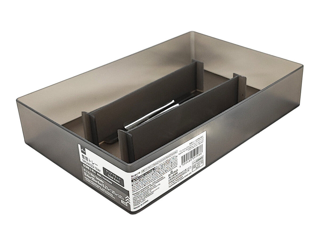 整理トレー(仕切板2枚付、13.4cm×20cm×4cm、クリアブラック)