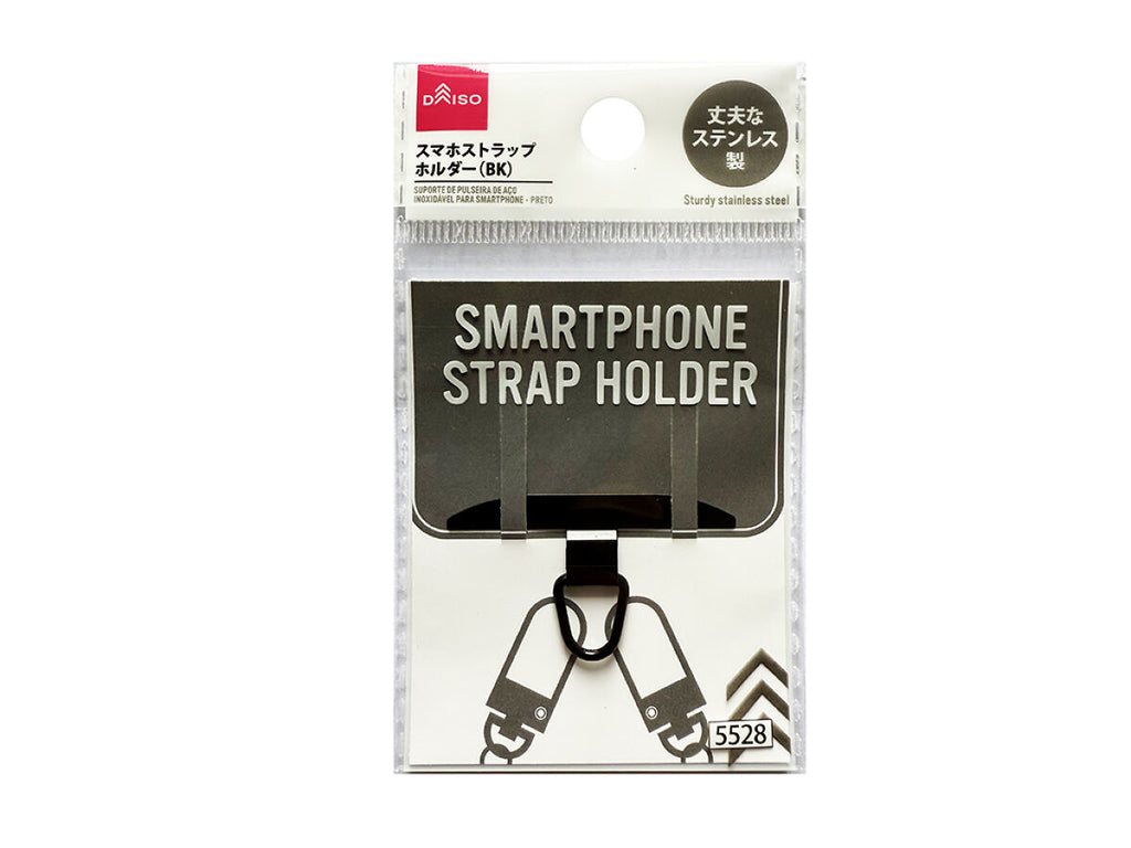 ②スマホを装着し、ストラップなどをフック部分に取り付けます。
