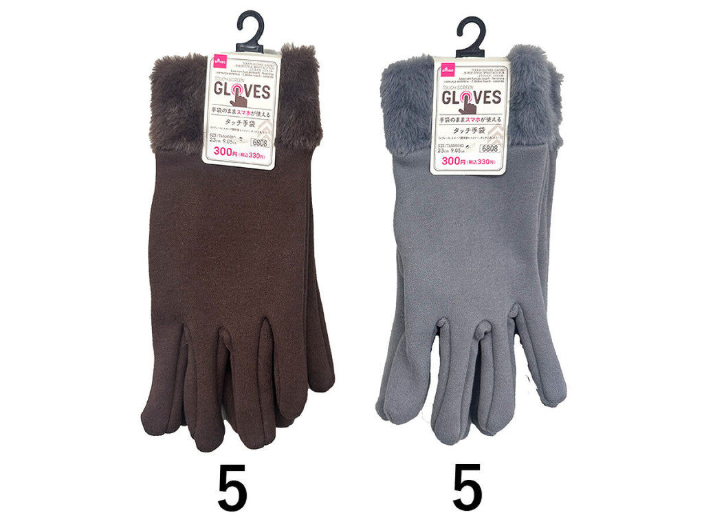 タッチ手袋(レディース、スエード調手首エコファー、タッチ2本、カラー)