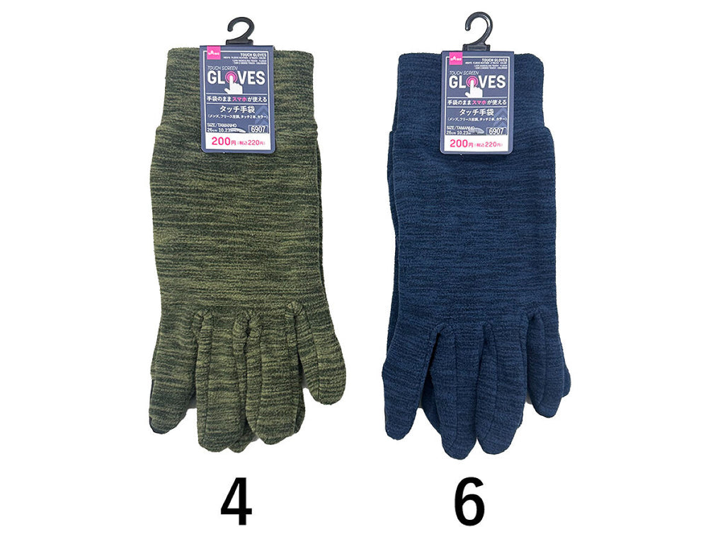 タッチ手袋(メンズ、フリース杢調、タッチ2本、カラー)