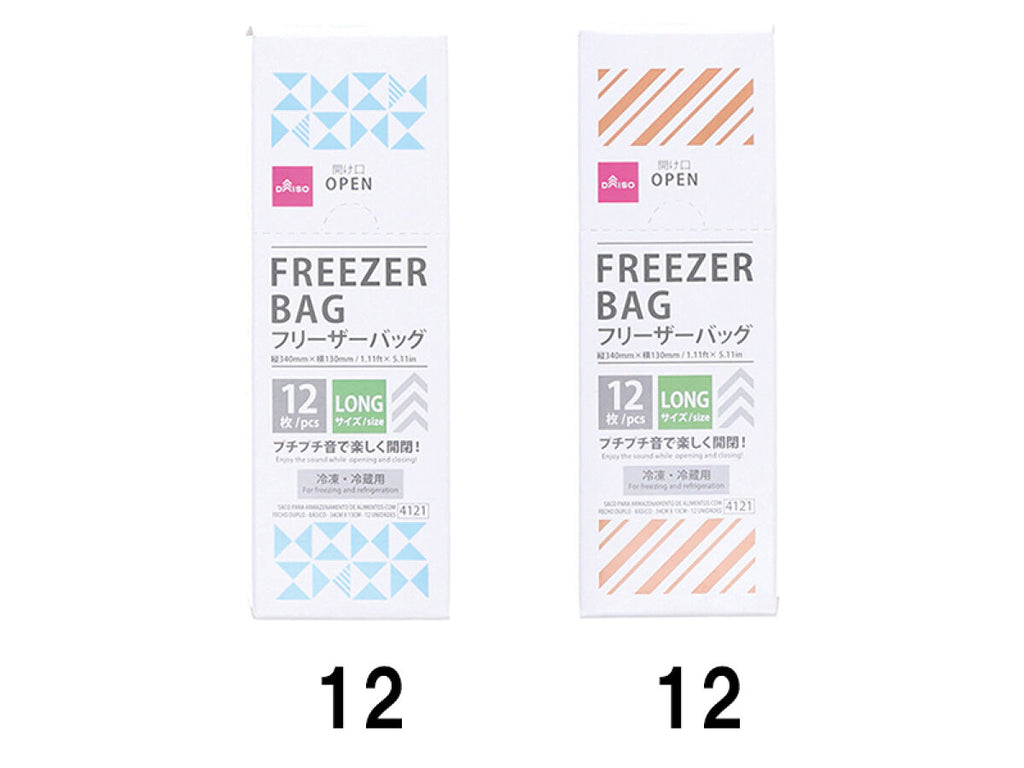 ダブルジップフリーザーバッグ(ベーシック、縦34cm×横13cm、12枚)