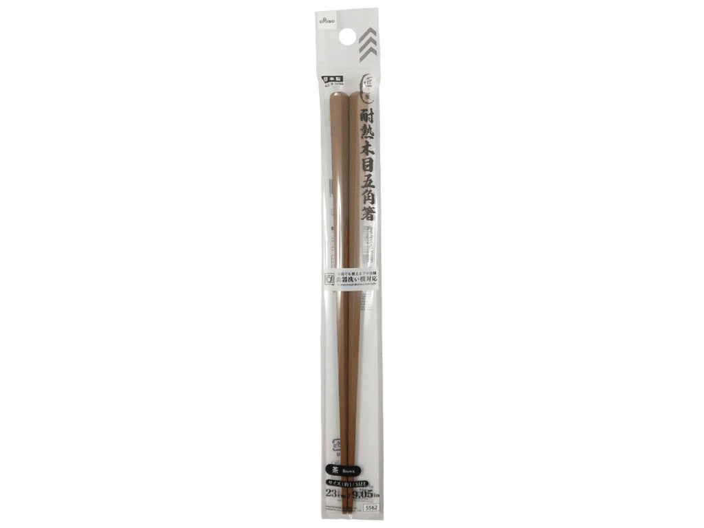 食洗機対応耐熱木目五角箸(茶、1膳)