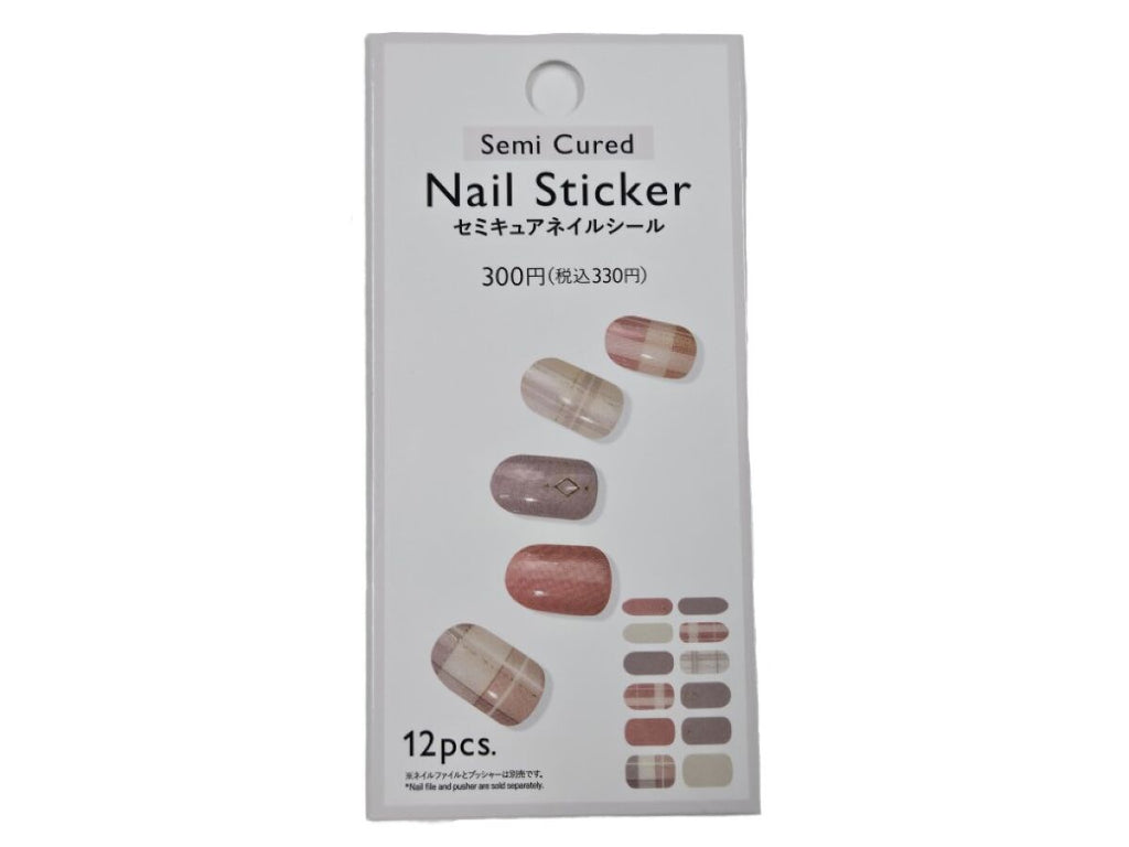 - 商品説明:貼る、削る、硬化で簡単ネイルネイルシール 12枚※ネイルファイルとプッシャーは別売です。使用前爪の表面をキレイに拭き取ります。1.ネイルシールを爪に合わせ、爪より少し小さめのものを選びます。※シートからネイルシールを剥がす際はシートの外側部分を持って剥がしてください。2.キューティクルラインから1mmほど余裕のあるところにネイルシールを貼ります。3.ネイルシールを貼り、余った部分は爪の形に合わせて折ります。4.ネイルファイル(別売)で爪の下に向けて余った部分を削ります。5.お好みの硬化方法で硬化させます。寝る前に貼り、朝起きるまで硬化自然光で約2時間硬化UV&LEDライトで約30秒硬化※本品の持続期間には個人差があります。※長時間の水仕事や入浴をした場合、剥がれやすくなります。剥がし方キューティクル部分からゆっくりシールを剥がします。剥がしにくい場合はプッシャー(別売)でキューティクルラインからゆっくり押し出しながらシールを剥がします。お手持ちのハンドクリームなどを塗るとさらに剥がしやすくなります。※UV&LEDライトを使用して硬化すると、自然光で硬化するよりも剥がしにくい場合があります。ネイルシールは光により硬