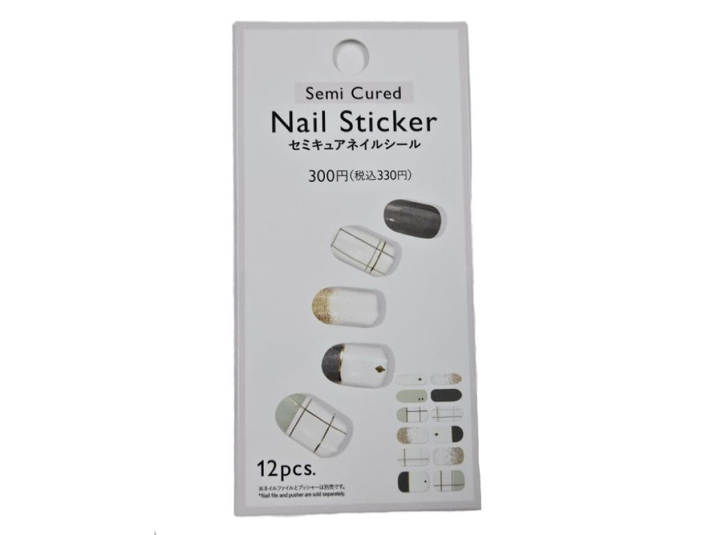 - 商品説明:貼る、削る、硬化で簡単ネイルネイルシール 12枚※ネイルファイルとプッシャーは別売です。使用前爪の表面をキレイに拭き取ります。1.ネイルシールを爪に合わせ、爪より少し小さめのものを選びます。※シートからネイルシールを剥がす際はシートの外側部分を持って剥がしてください。2.キューティクルラインから1mmほど余裕のあるところにネイルシールを貼ります。3.ネイルシールを貼り、余った部分は爪の形に合わせて折ります。4.ネイルファイル(別売)で爪の下に向けて余った部分を削ります。5.お好みの硬化方法で硬化させます。寝る前に貼り、朝起きるまで硬化自然光で約2時間硬化UV&LEDライトで約30秒硬化※本品の持続期間には個人差があります。※長時間の水仕事や入浴をした場合、剥がれやすくなります。剥がし方キューティクル部分からゆっくりシールを剥がします。剥がしにくい場合はプッシャー(別売)でキューティクルラインからゆっくり押し出しながらシールを剥がします。お手持ちのハンドクリームなどを塗るとさらに剥がしやすくなります。※UV&LEDライトを使用して硬化すると、自然光で硬化するよりも剥がしにくい場合があります。ネイルシールは光により硬