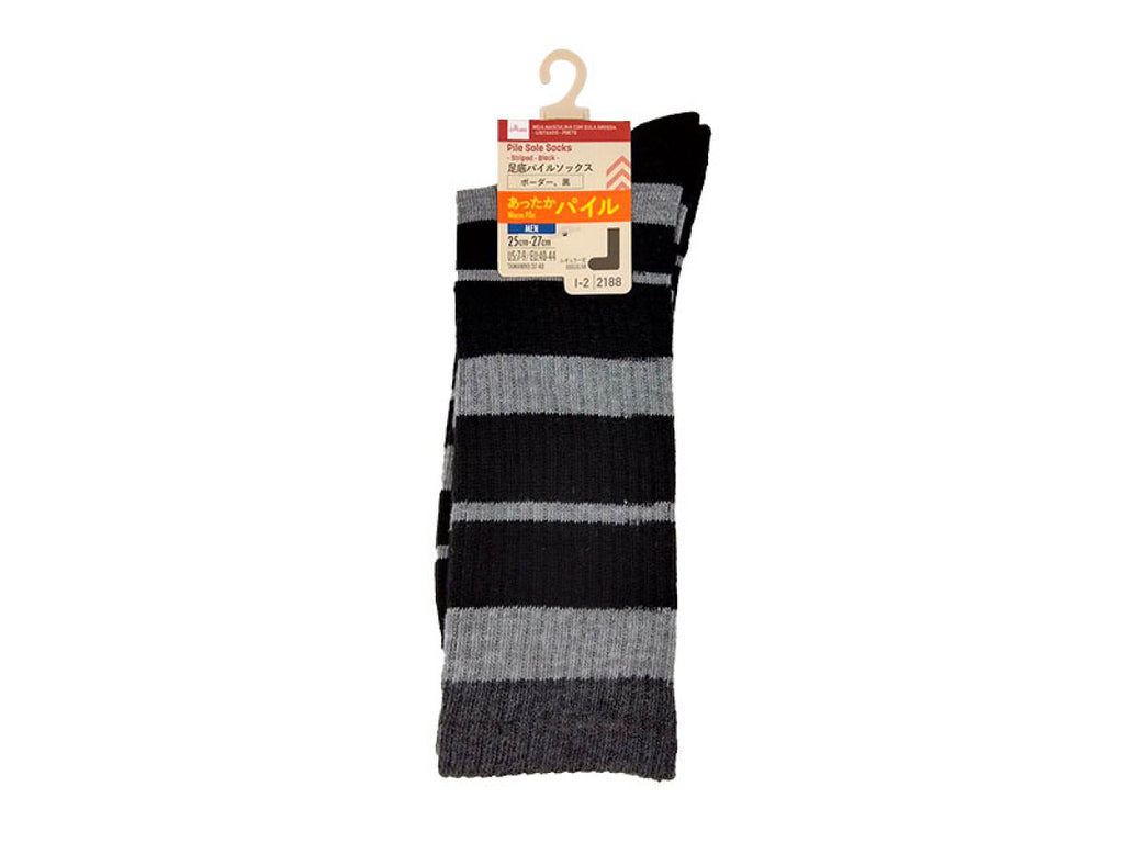 足底パイルソックス(メンズ、ボーダー、黒)黒8×1足入