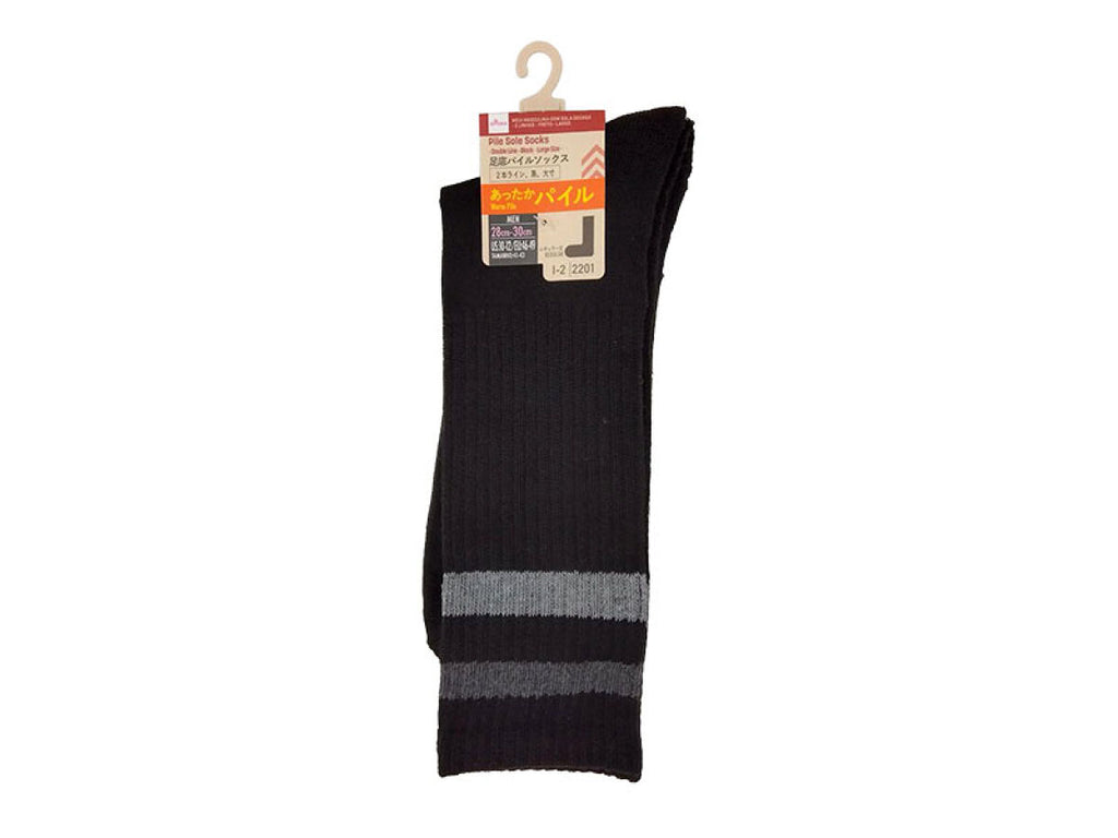 足底パイルソックス(メンズ、2本ライン、黒、大寸)