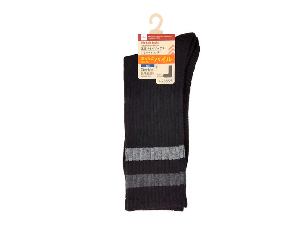 足底パイルソックス(メンズ、2本ライン、黒)