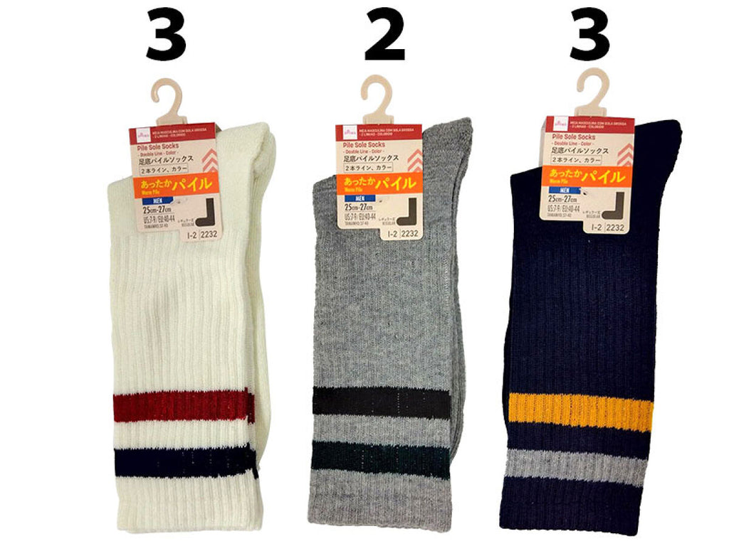 足底パイルソックス(メンズ、2本ライン、カラー)