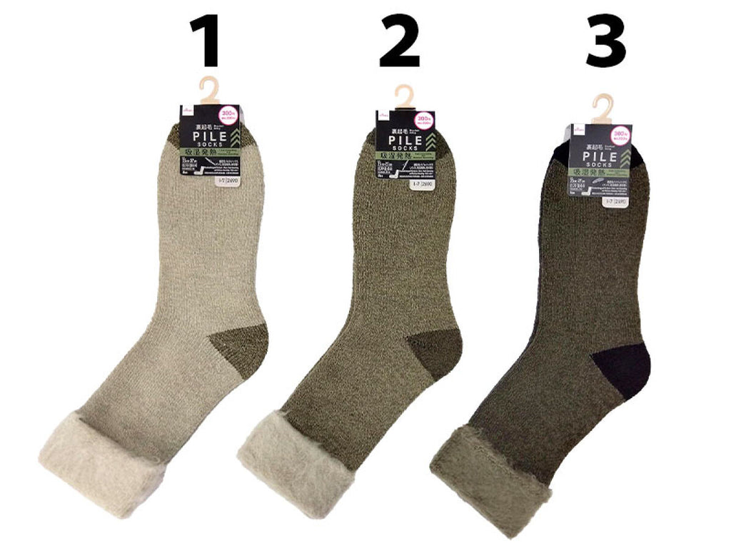 裏起毛パイルソックス(メンズ、吸湿発熱、色切替)