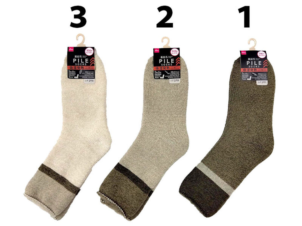 裏起毛パイルソックス(レディース、吸湿発熱、色切替)