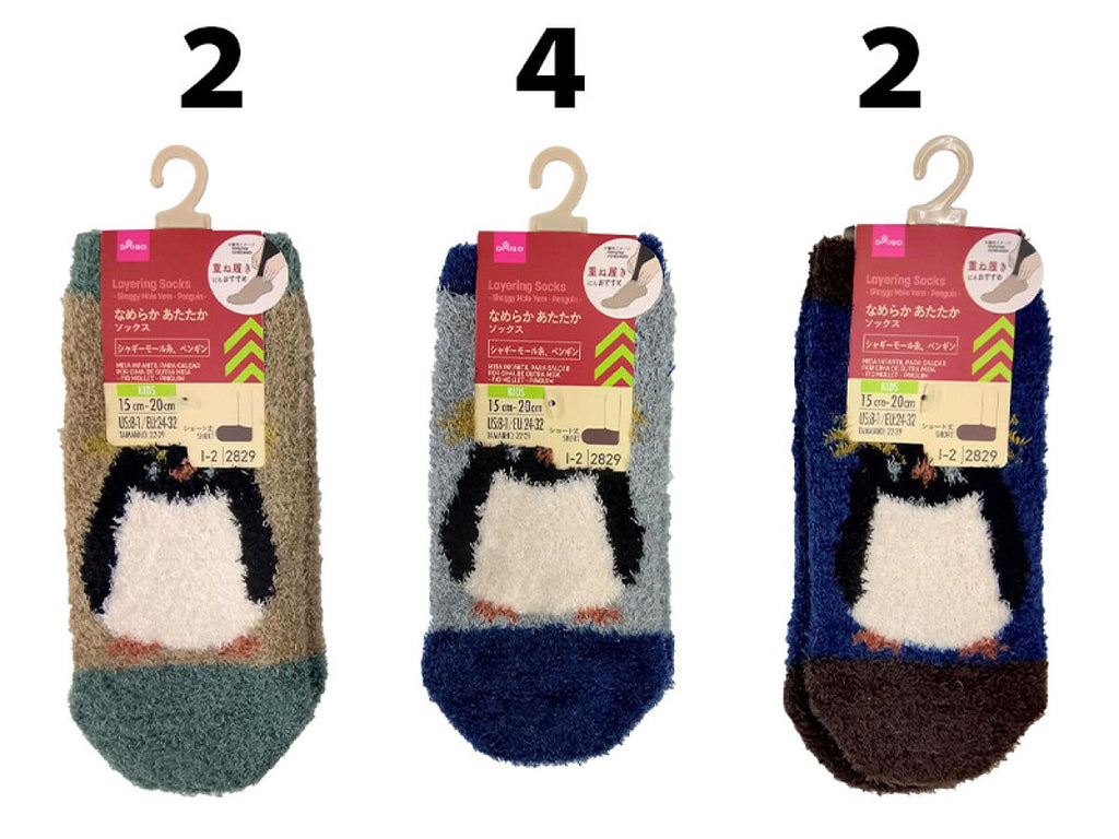 重ね履きソックス(キッズ、シャギーモール糸、ペンギン)