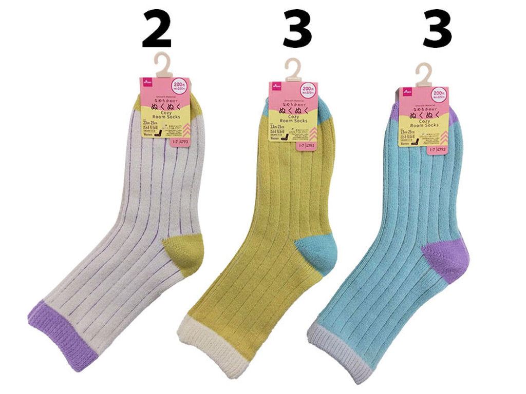 ぬくぬくルームソックス(レディース、モール糸、ストライプ)