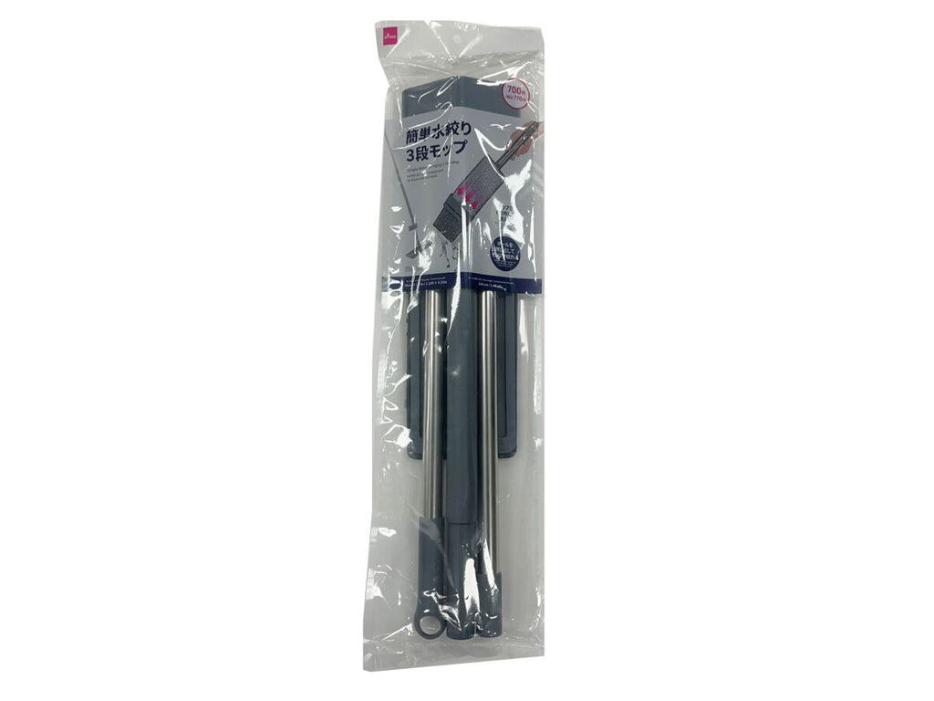 - 商品説明:ポールを押し出してモップが絞れる ポール2本で長さ調節 モップを取り外して洗える スリムにスタンド収納●ポールを押し出してモップが絞れる●ポール2本で長さ調節●スリムにスタンド収納●洗って繰り返し使えるモップタイプ1.ポールを本体にしっかり取り付けます。※必要に応じて1本または2本ポールを繋げ、長さを調節してください。2.本体のプラスチック部分を持ちながら、ポールを押し出し、モップに水を含ませます。3.ポールを押し引きして、モップを絞ります。4.ポールをしっかり押し出し、ヘッドを曲げて使用します。5.収納時はポールを最後まで引き出し、スタンドさせます。※しっかり締まっているか確認後、使用してください。※使用中に緩んだ場合は再度締め直してください。※強く締めすぎると外れにくくなることがあります。<モップの取り付け方>●モップをヘッドの溝に差し込み、面テープにしっかり貼り付けます。※モップが劣化したら、別売りの4550480617497_簡単水絞り3段モップ(リフィル)を購入し取り替えてください。●モップ表面の比較的大きなホコリ等は直接取り除いてください。●他の製品と一緒に洗濯しないでください。●手洗いしてください。