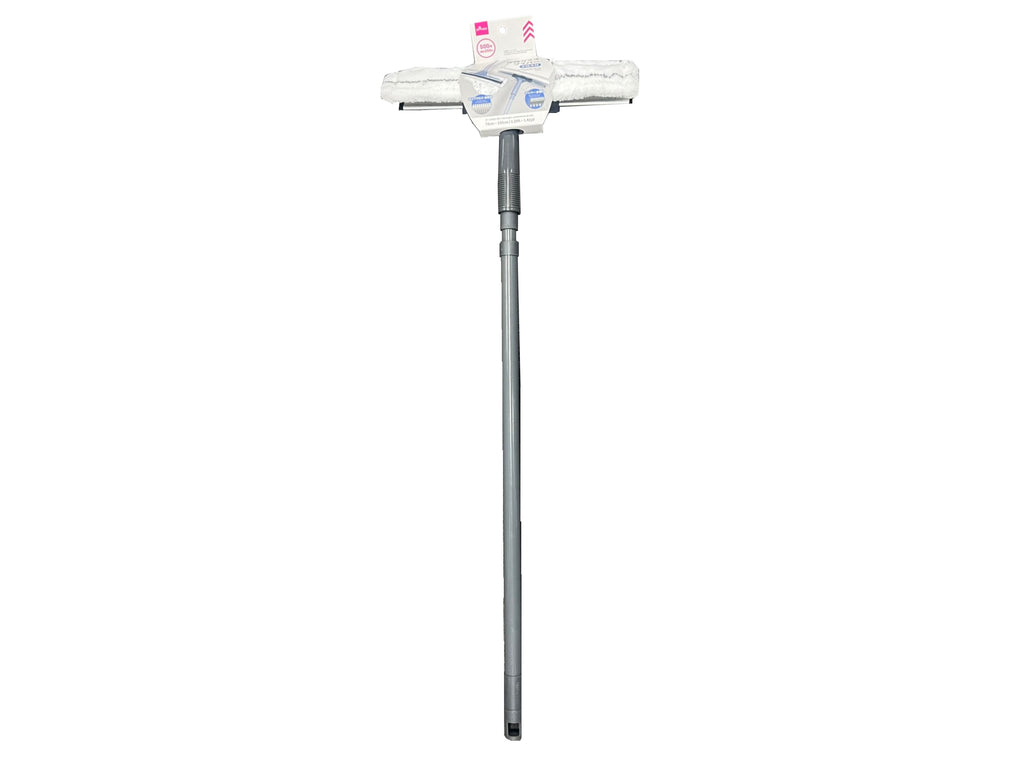モップクロス:水拭き_ワイパー:水切り_窓の掃除が簡単に_モップクロスを取り外して洗える_※ヘッド部分の取り外しはできません。_長さ調節できる_ポールの長さ(約)79cm _ 130cm_<ポールの伸ばし方>_●ポールを矢印Aの方向に回すと伸びます。_●矢印Bの方向に回すと締まります。_※しっかり締まっているか確認後、使用してください。_※使用中に緩んだ場合は再度締め直してください。_※強く締めすぎると外れにくくなることがあります。_<ワイパーを使用する場合>_●水切りごとにワイパーについた汚れを拭き取ってください。_●ワイパーや使用面にゴミなどの異物が付着したまま使用すると使用面をキズつける場合があります。※無理に動かさないでください。●モップ表面の比較的大きなホコリ等は直接取り除いてください。_●他の製品と一緒に洗濯しないでください。_●手洗いしてください。_●漂白剤は使用しないでください。_●タンブラー乾燥はしないでください。_●陰干ししてください。_●洗濯液や水に浸け置きしないでください。_●ねじり絞りはしないでください。_●毛が抜けることがあります。●直射日光・高温多湿の場所を避けて、保管してください