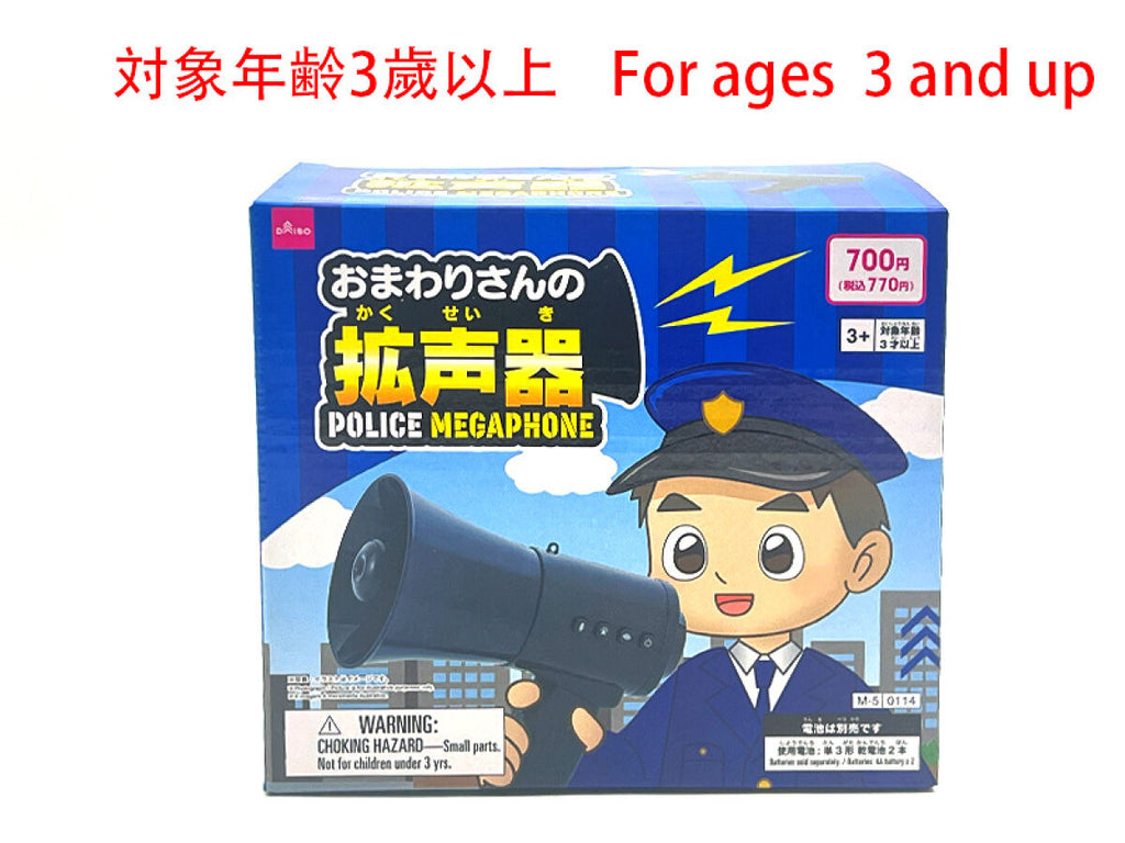 - 商品説明:対象年齢3才以上_1.電池の入れ方、交換の仕方。電池蓋のネジをプラスドライバーで外します。電池蓋を開けて単3形乾電池2本をプラスマイナス(+-)を間違えないように入れます。電池蓋を閉めてネジでしっかりと固定してください。2.使用電池:単3形乾電池x2本3V 0.15-0.2A●電池は別売りです。・電池を正しくセットしてからスイッチを押すと、音が出ます。使用が終わったら、またスイッチを押してオフにします。1.スイッチ2.ファニーサウンド(6パターン)3.緊急サウンド(4パターン)4.拡声器マイク●耳の近くで使用しないでください。●保護者の方へ、必ずお読みください。●本品を使用する際は、保護者監督のもと使用してください。●分解や改造をしないでください。●防水性ではありません。本体を濡らさないでください。●濡れた手で使用しないでください。●電池はプラスマイナスを正しくセットしてください。●二次電池(充電式電池)は、絶対に使用しないでください。●落としたり、ぶつけたりしないでください。●変形・破損した場合、直ちに使用を中止してください。●火や熱源のそばに置かないでください。●新しい電池と古い電池、種類の違う電池を混ぜて使用