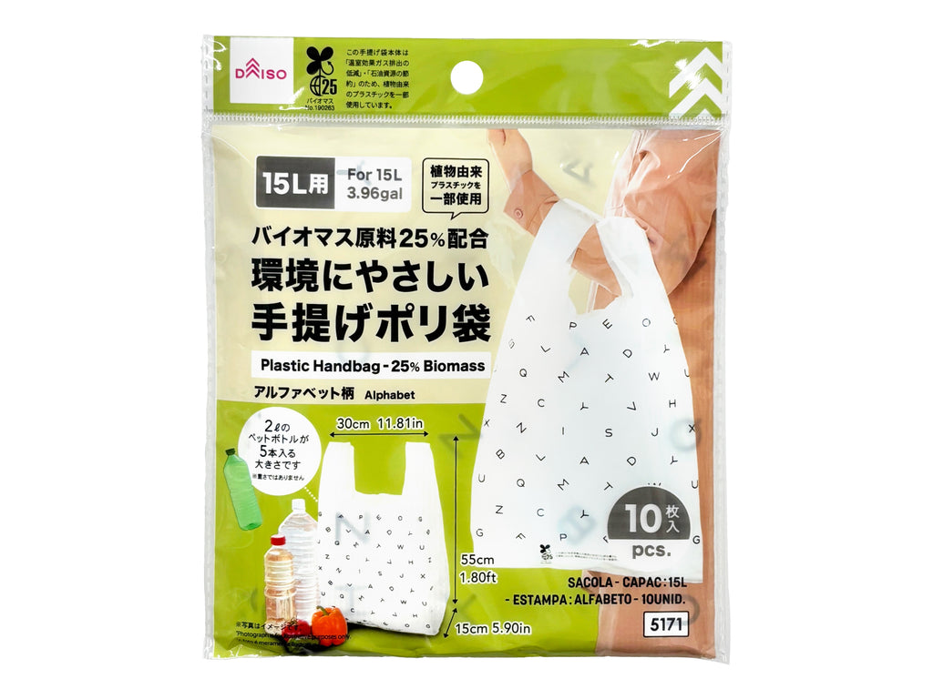 手提げポリ袋(15L用、10枚、バイオマス25%、アルファベット柄)