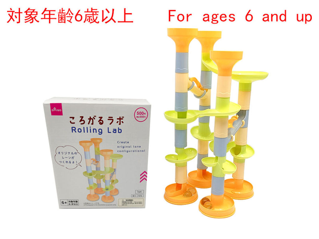1.パーツを組み立てます。 2.一番上の入口に玉を置くと、スロープを流れて下まで落ちます。●乳幼児の手の届かない場所に保管してください。●保護者の方へ、必ずお読みください。●本品を使用する際は、保護者監督のもと使用してください。●小部品があります。誤飲・窒息の危険がありますので、3才未満のお子様へは絶対に与えないでください。●周囲の安全を確認した上で使用してください。●分解や改造をしないでください。●投げたり、振り回したりしないでください。●変形・破損した場合、直ちに使用を中止してください。●本来の用途以外に使用しないでください。