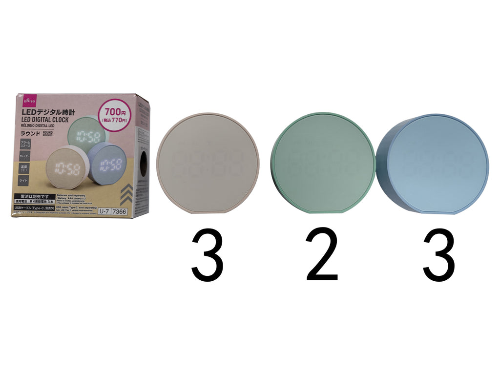 LEDデジタル時計(ラウンド、カラーアソート)なし