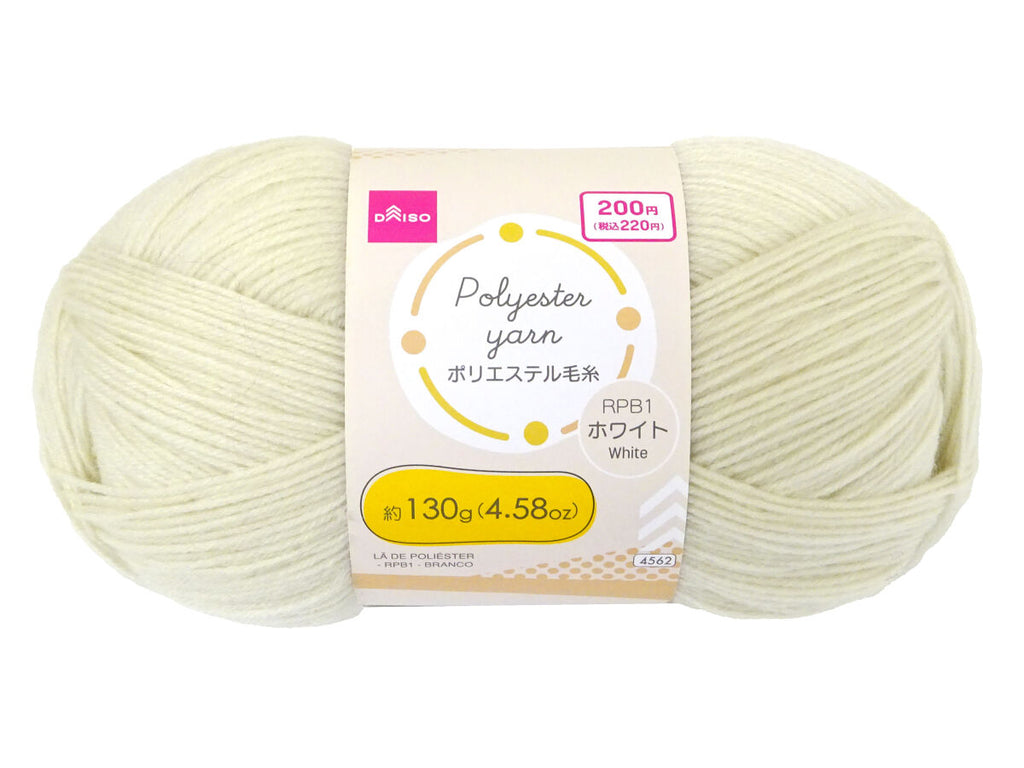 ポリエステル毛糸(RPB1、ホワイト)130g