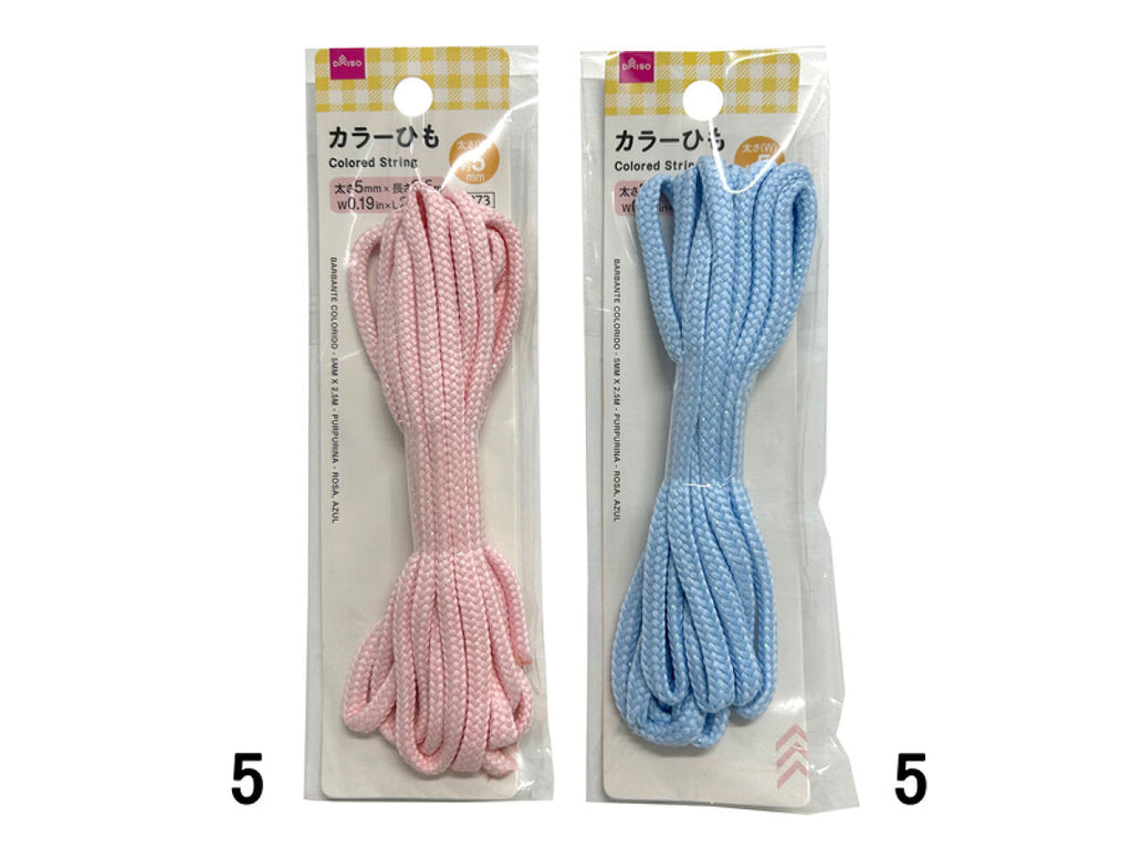 カラーひも(太さ5mm×長さ2.5m、ラメ、ピンク、ブルー)
