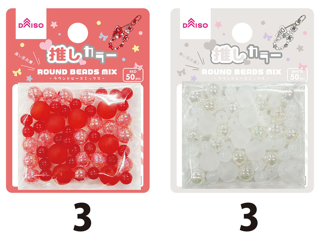 ラウンドビーズミックス(推しカラー、レッド・ホワイト、50個)