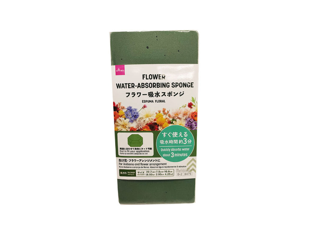 - 商品説明:すぐ使える吸水時間約3分 用途に合わせてカット可能 長方形 自由にカット 練習用に プチギフトに インテリアに生け花やフラワーアレンジメントに①器の大きさに合わせて、吸水スポンジを切ります。 ②スポンジの角は花が挿しにくく、崩れやすいので面取りをしておきます。 ※スポンジを切る時、細かい粉が出ますので周囲の環境及び換気に十分ご注意ください。 ③生花用に使用する場合は、吸水スポンジに水を十分に吸わせます。洗面器などに水を張って、浮かべるように3分ほど自然に水を吸わせます。 ※無理に水を吸わせると、中心まで十分吸水できない場合があります。 ④器に吸水スポンジをセットし、花を挿していきます。-●直射日光・高温多湿の場所を避けて、保管してください。サイズや形状が合わない場合は使用しないでください。●食べ物ではありません。絶対に口に入れないでください。●乳幼児の手の届かない場所で使用・保管してください。●火や熱源のそばに置かないでください。●本来の用途以外に使用しないでください。