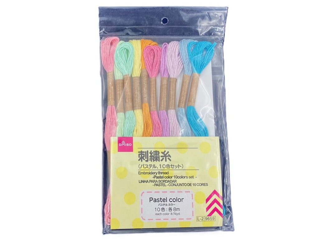 - 商品説明:刺繍糸10色セット:6本撚り糸、各色8m タペストリーやハンカチ等の刺繍に最適。ミサンガ等のハンドメイドにも。●直射日光・高温多湿を避け使用・保管●子どもの手の届かない場所で使用・保管●用途外に使用しない●火や熱源のそばに置かない