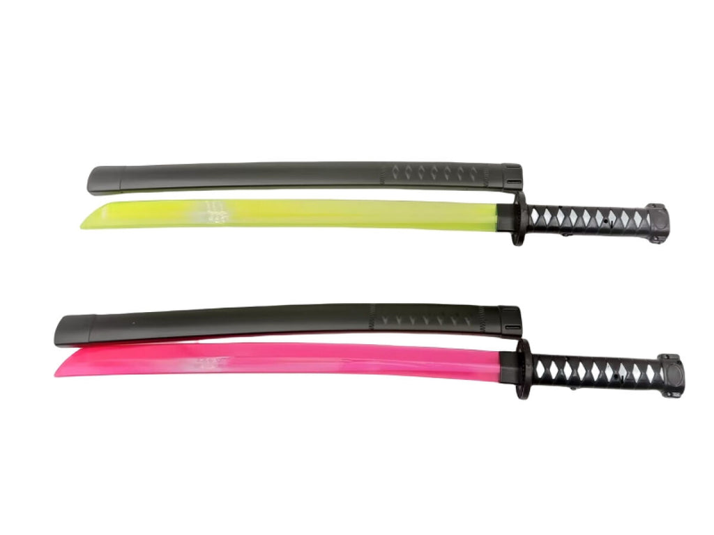 スイッチをオンにすると、ライトが点灯します、刀を振るとセンサーにより音が出ます。
