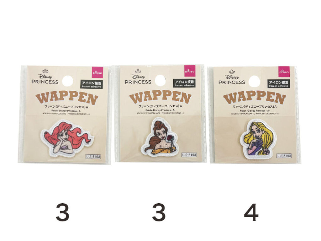 - 単品サイズ:<ラプンツェル>3.7×4×0.1cm_<ベル>3.8×3.9×0.1cm_<アリエル>5.2×3.8×0.1cm