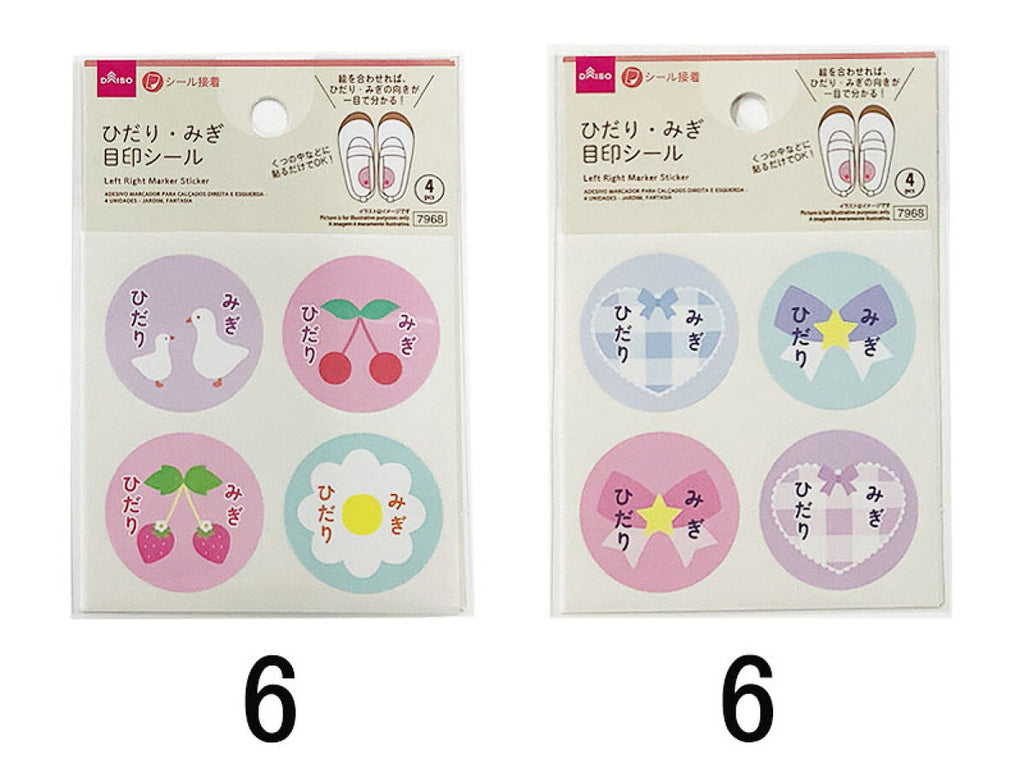 くつなどの左右の向きを分かりやすくする目印シールです。