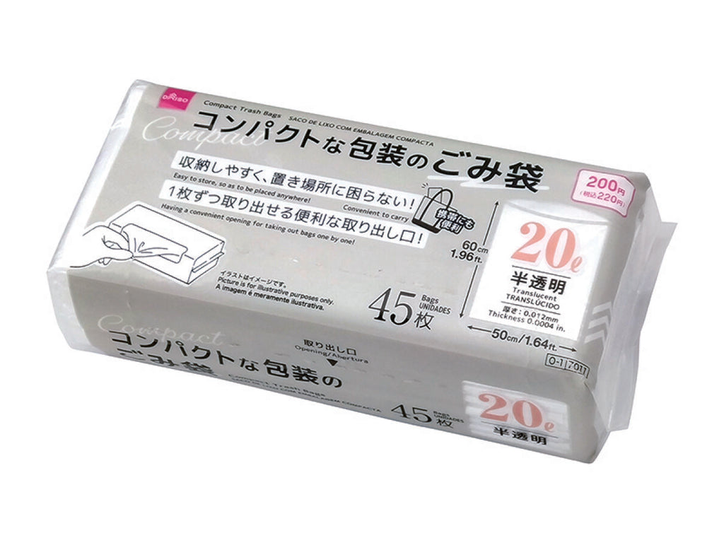 コンパクトな包装のごみ袋(20L、半透明、45枚)