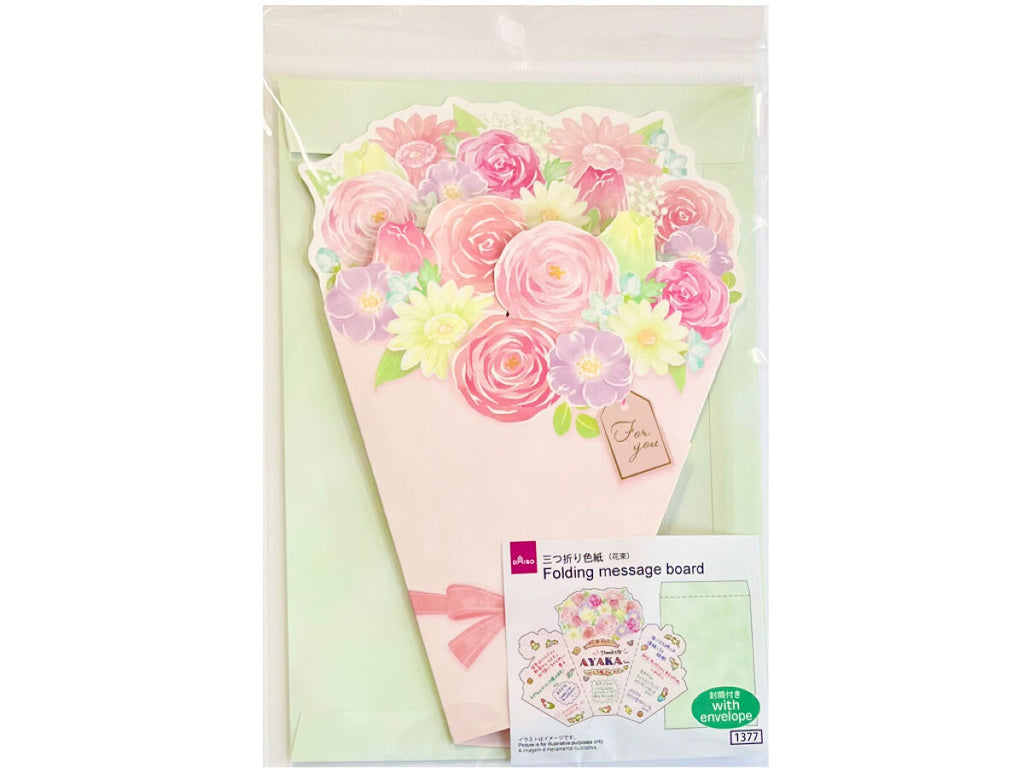 三つ折り花束色紙(封筒付、ピンク、17.5cm×25cm)