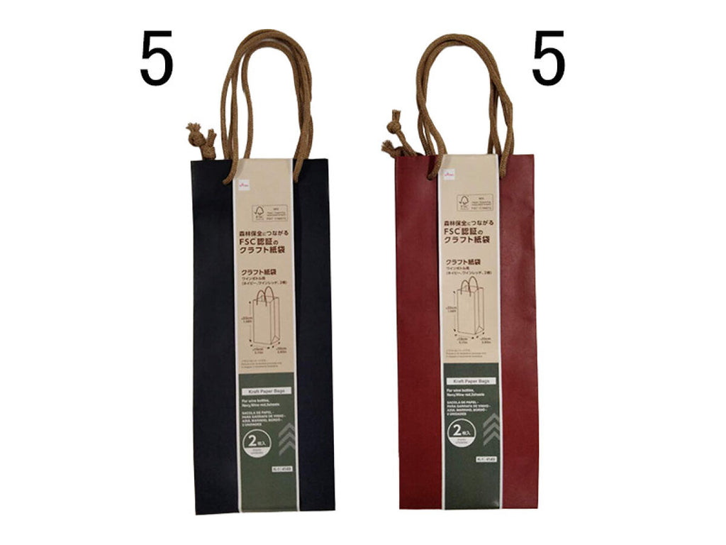 クラフト紙袋(ワインボトル用、ネイビー、ワインレッド、2枚)