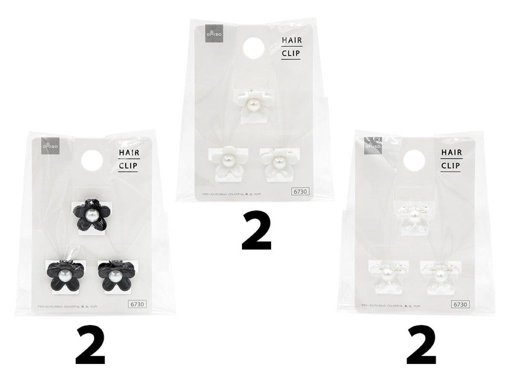 フラワーミニバンスセット(フェイクパール、黒、白、クリア)