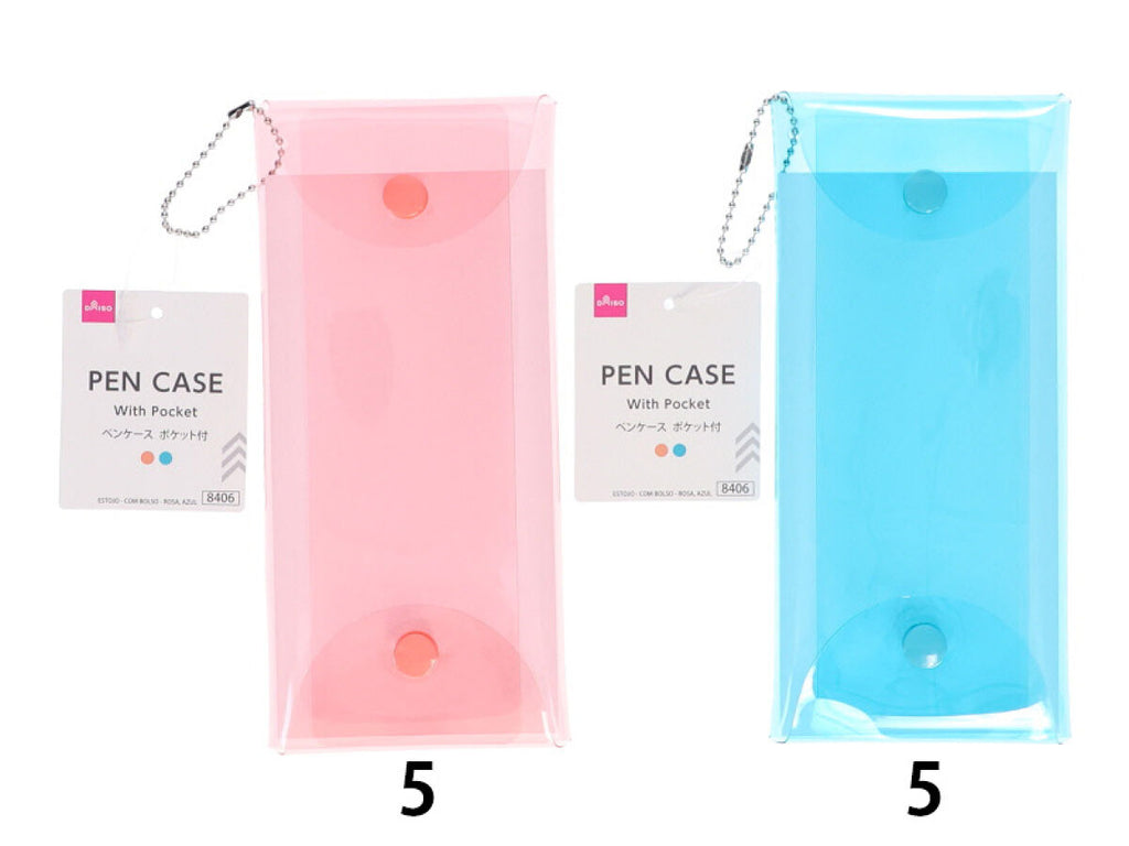 ペンケース(ポケット付、ピンク、ブルー)