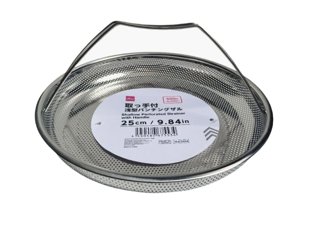 - 商品説明:取っ手付浅型パンチングザル(25cm)●異種金属と接触した状態で保管しないでください。●初めて使用する際は、食器用洗剤等で水洗いしてください。●たわし、又はクレンザーは使用しないでください。●鋭利な部分があります。ケガをしないよう注意してください。●変形・破損した場合、直ちに使用を中止してください。●火や熱源のそばに置かないでください。●本来の用途以外に使用しないでください。