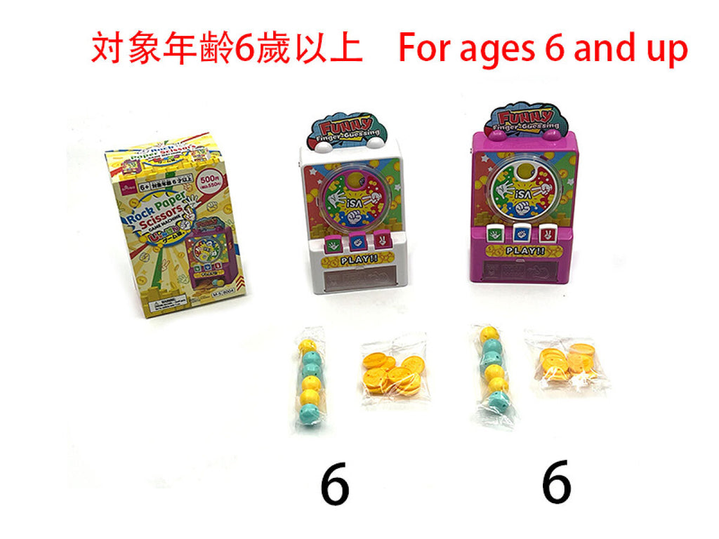 - 商品説明:対象年齢6才以上セット内容:青色ボール×3個 黄色ボール×3個 コイン×10個 ゲーム機×1台●看板を本体上側にしっかりと取り付けます。ボールとコインを取り出し、ゲーム機の左側にあるカバーを開け、ボールをその中に入れます。ゲーム機の右側にある入口にコインを入れると本体の回転盤が回り始めます。それが停止する前に三つのボタンを押します。ボタンの表示している手ぶりが回転盤に勝った場合、ボールとコインが下の出口から出てきます。下のカバーを開けると、ボールを取り出すことができます。●乳幼児の手の届かない場所に保管してください。●直射日光・高温多湿の場所を避けて、保管してください。●保護者の方へ、必ずお読みください。●小部品があります。誤飲・窒息の危険がありますので、3才未満のお子様へは絶対に与えないでください。●本品を使用する際は、保護者監督のもと使用してください。●分解や改造をしないでください。●落としたり乱暴に取り扱わないでください。破損の原因となります。●変形・破損した場合、直ちに使用を中止してください。●火や熱源のそばに置かないでください。●本来の用途以外に使用しないでください。